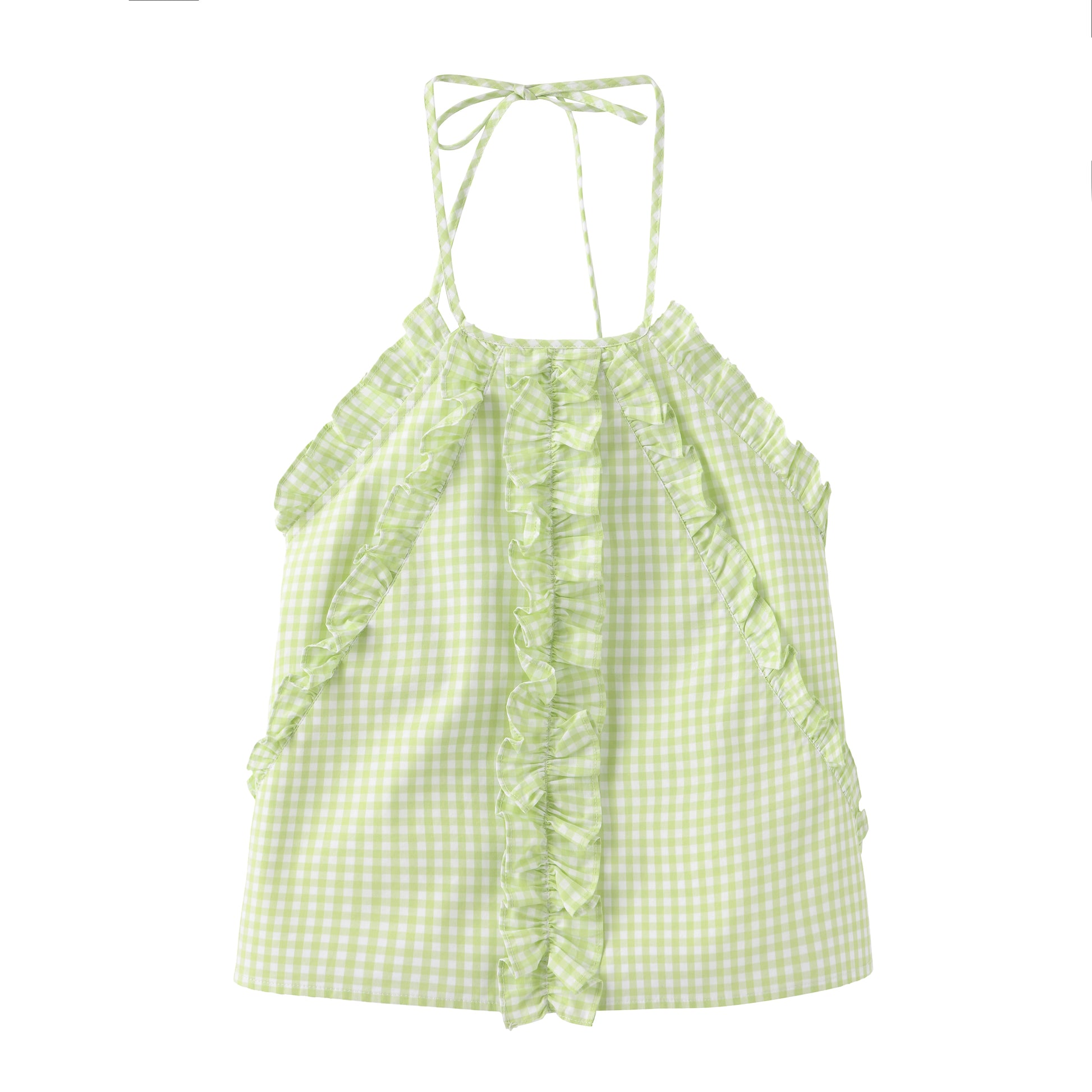 'Breathe deeply' Green Ruffles Tank Top